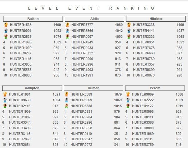 Here are the Top 10 Ranks Before we add the rewards for the top 10 players, we need a ticket with following information: ID: Charactername: PIN: Email: Weapon: