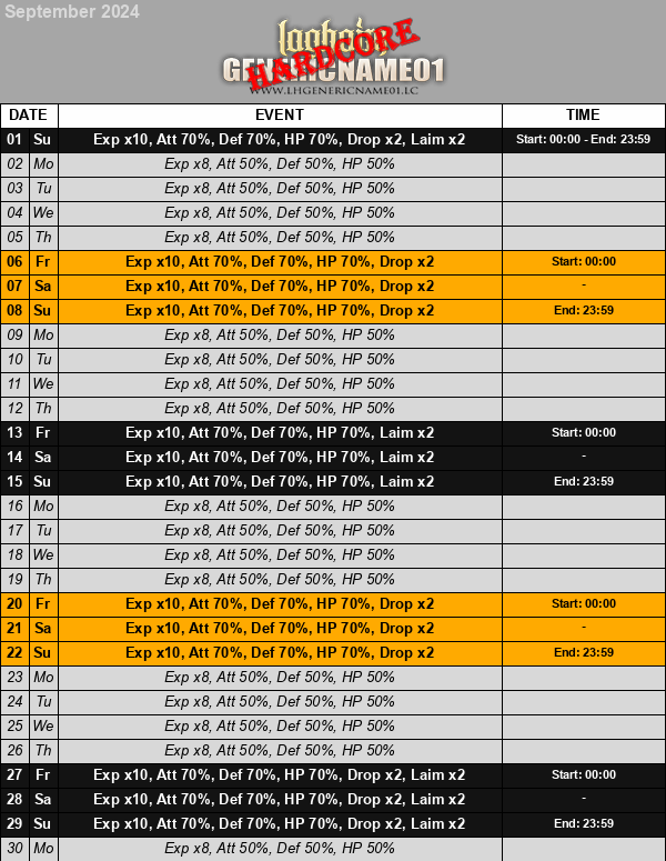 [Hardcore Server] Calendar Event Exp September 2024